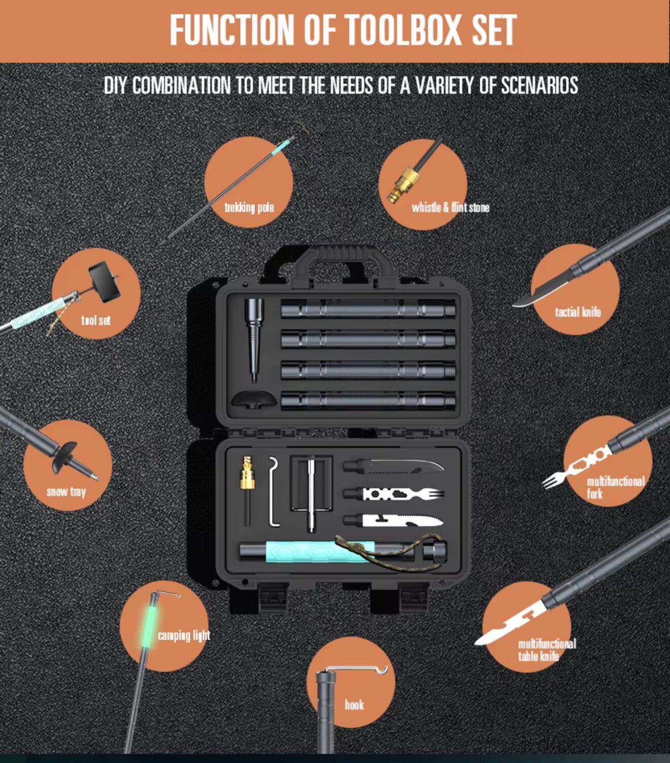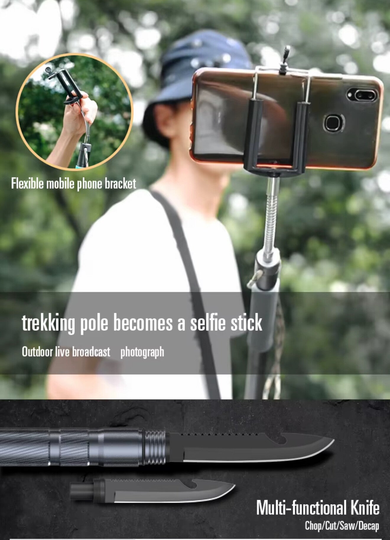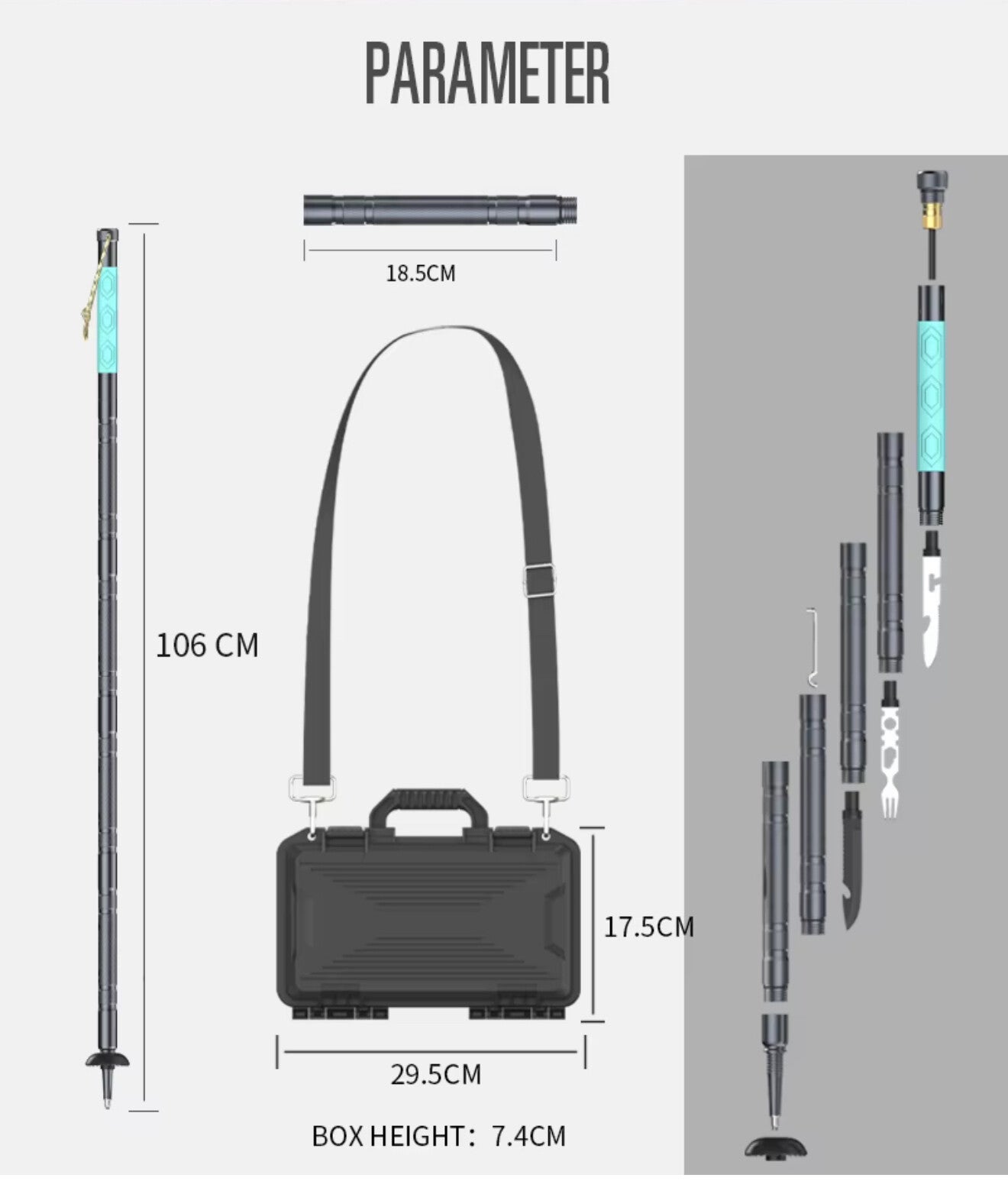 WeXplore - Outdoor camping wandel tekking pole Survival kit met haak.