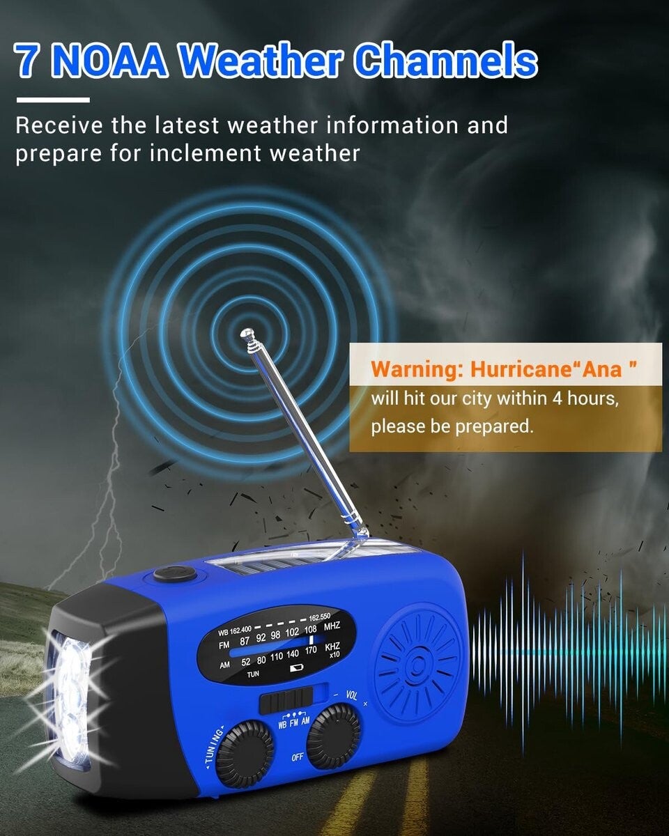 Blijf op de hoogte met onze noodradioâs op zonne-energie of dynamo. Handig bij stroomuitval of tijdens outdoortrips.