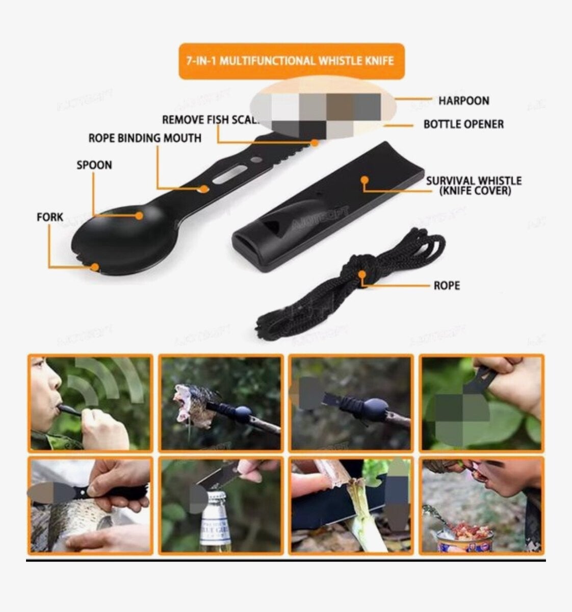 - Multifunctionele lepel/vork, mes en fluitje