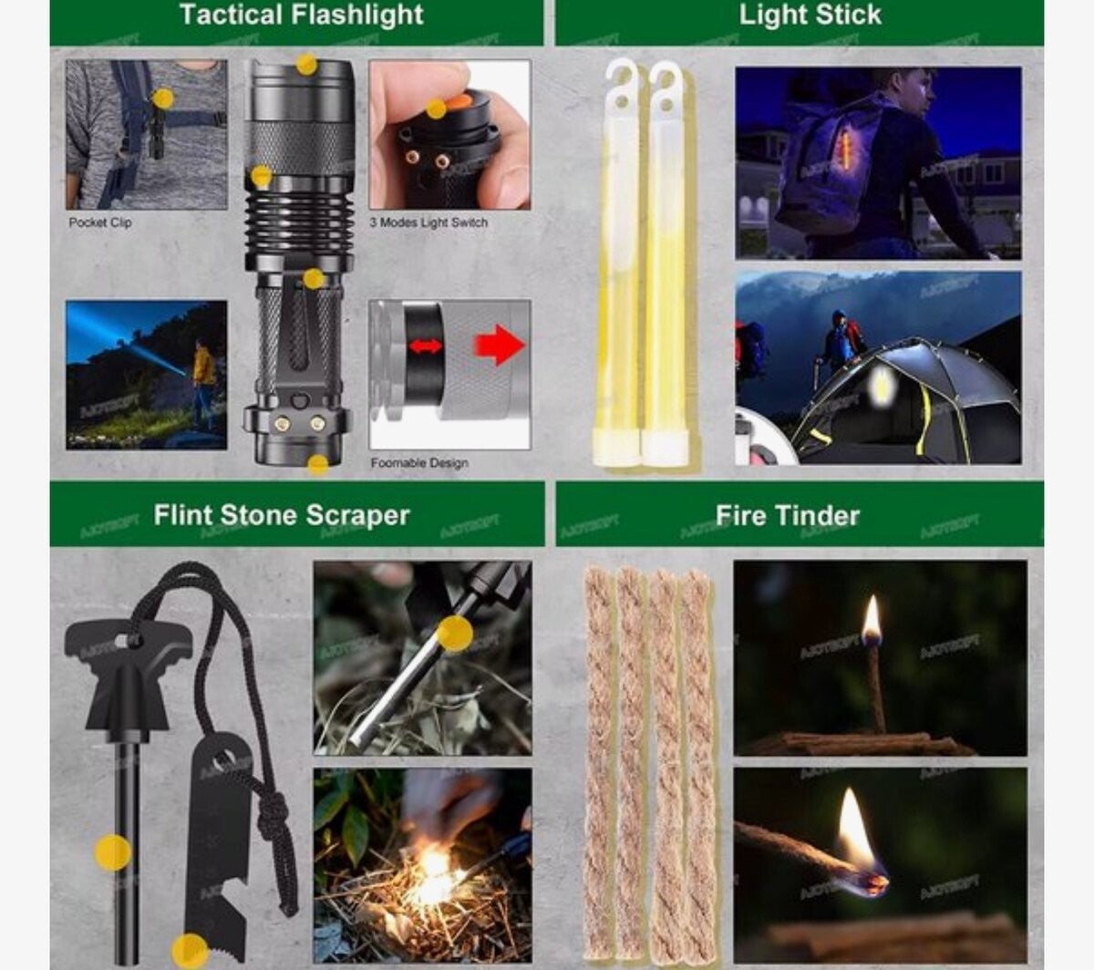 Johnny's Trading 4-delige Survival & Outdoor Set – Compleet Avonturenpakket voor Kamperen, Outdoor & Noodgevallen